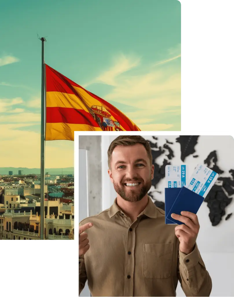 - A confirmed round-trip flight booking showing entry and exit from Spain.